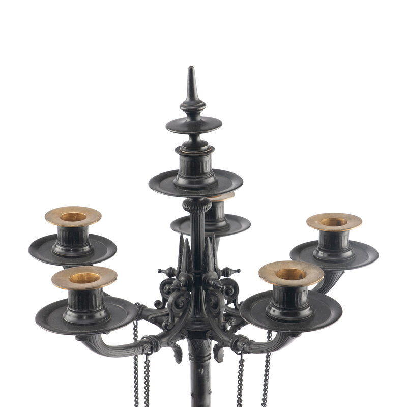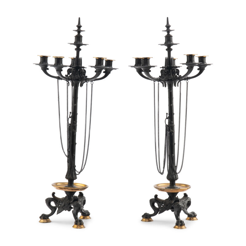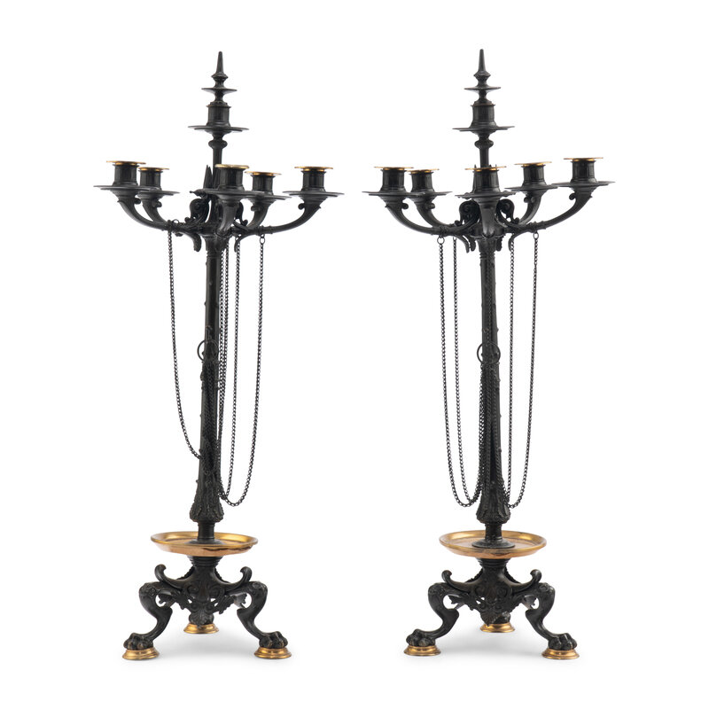 A Pair of French Neoclassical Parcel-Gilt Bronze and Marble Candelabra