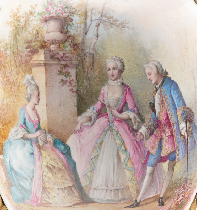 the scene signed 'A Maglia' to the lower center, the underside of the base bearing spurious Sèvres marks.