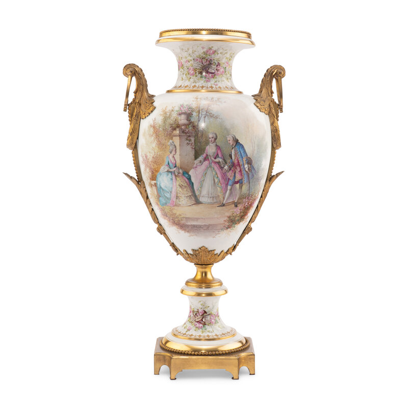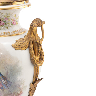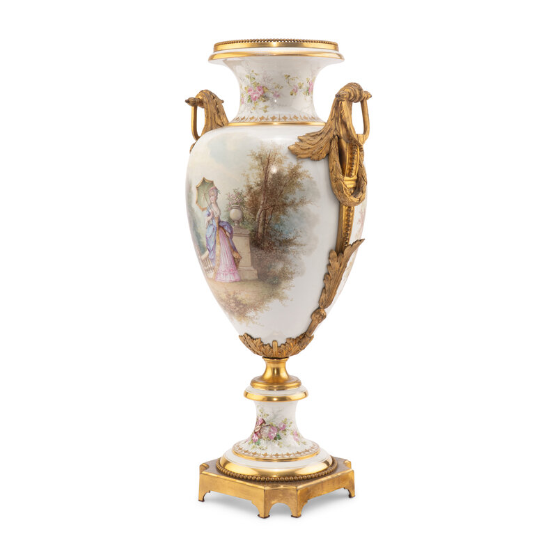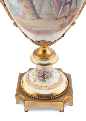 A Sèvres Style Gilt Bronze Mounted Porcelain Urn