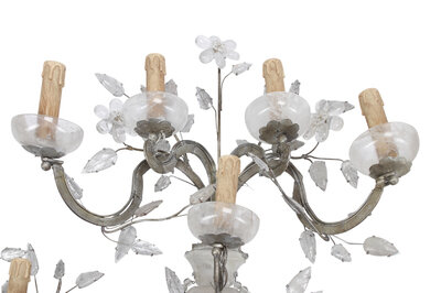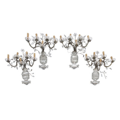 A Set of Four Silvered Metal and Rock Crystal Sconces