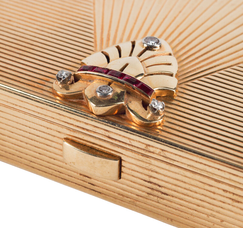 An Art Deco 14-Karat Gold, Diamond and Ruby Box
