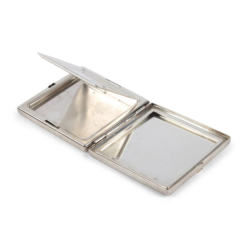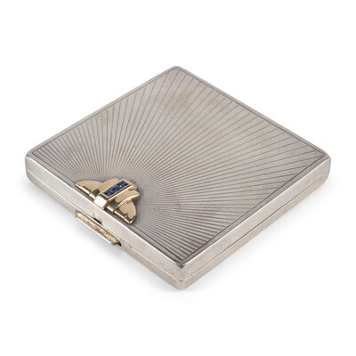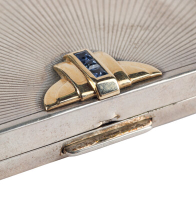 A Cartier-Retailed Silver, 14 Karat Gold and Sapphire Compact