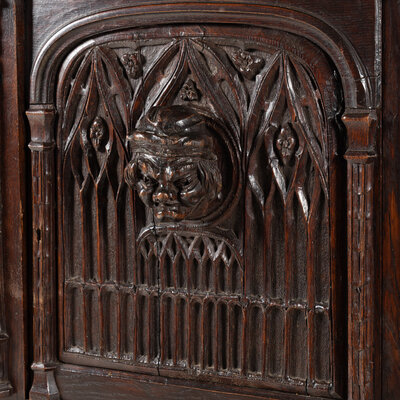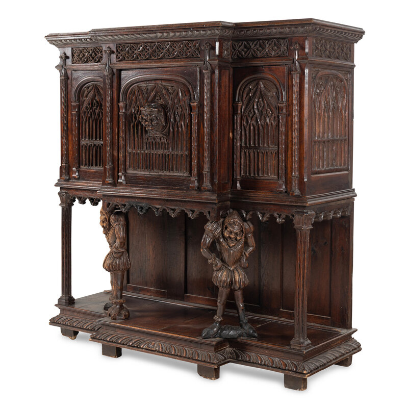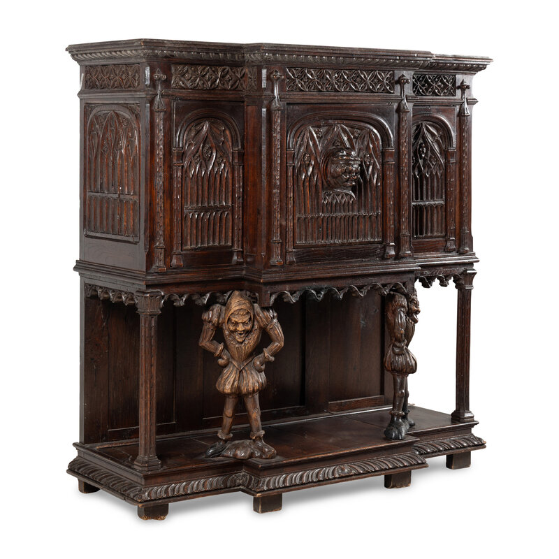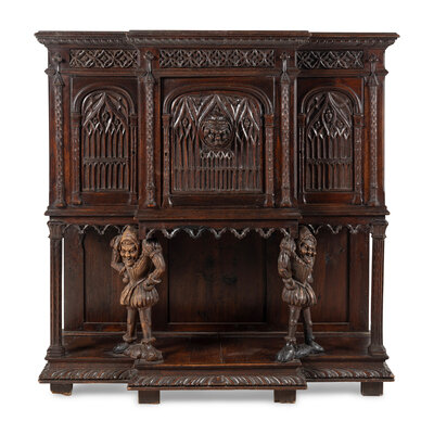 A Gothic Revival Carved Oak Court Cupboard