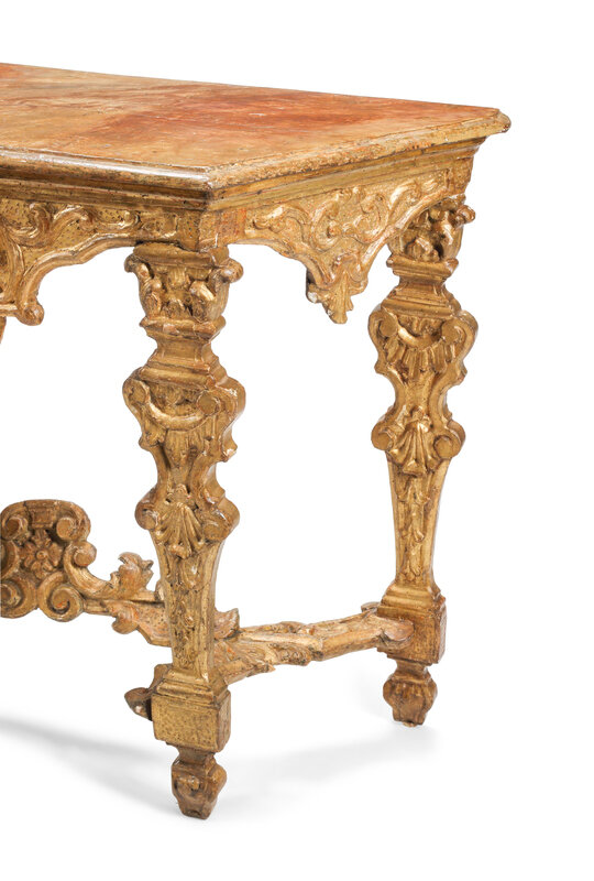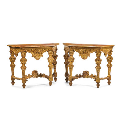 A Pair of Italian Baroque Carved Giltwood Console Tables