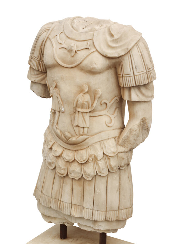 An Italian Carved Marble Torso of a Roman Soldier