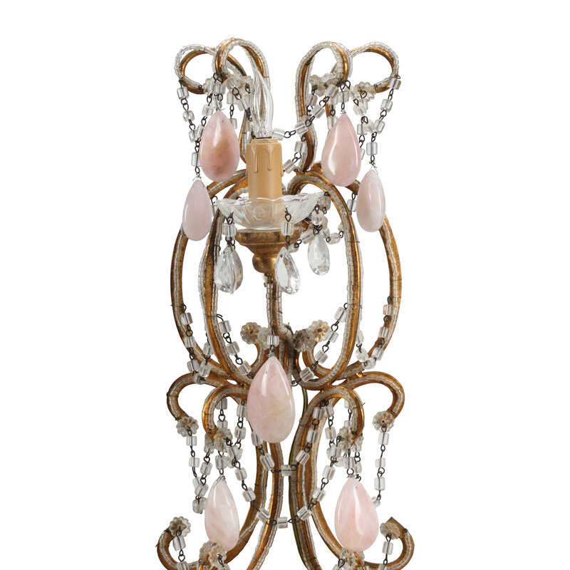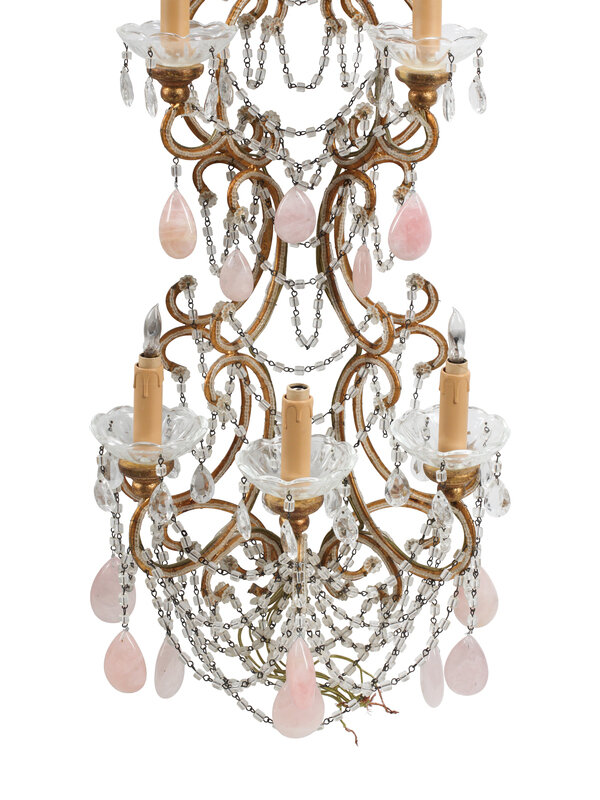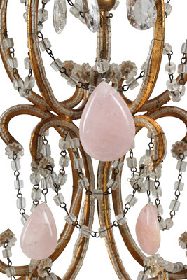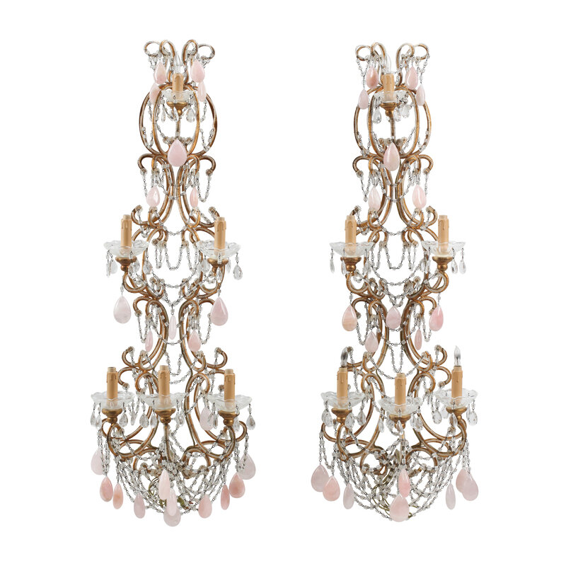 A Pair of Large Italian Neoclassical Style Cut Glass and Rose Quartz Six-Light Sconces