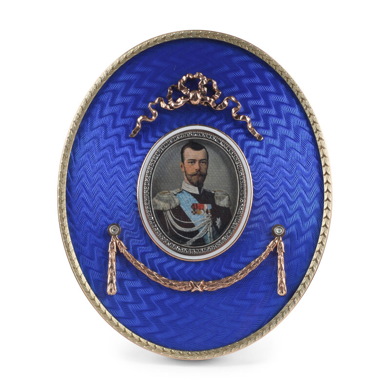A 14 Karat Gold, Diamond and Guilloché Enamel Picture Frame