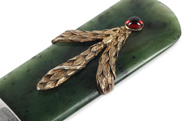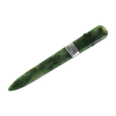 A Silver, Silver-Gilt and Hardstone Cabochon Mounted Nephrite Letter Opener