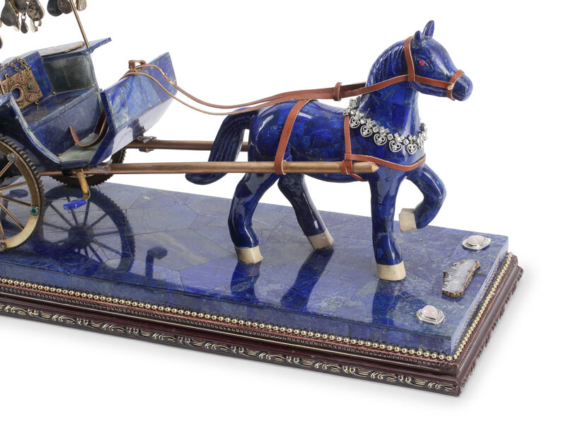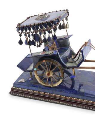 A Jeweled Lapis Lazuli Model of a Chariot and Horse