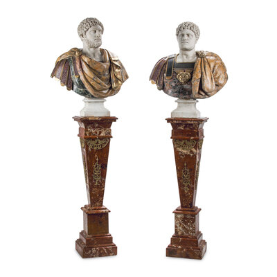 A Pair of Italian Marble, Bronze and Porphyry Busts