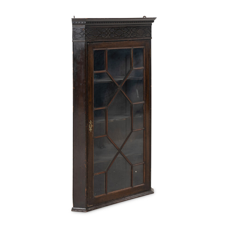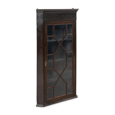 A George III Fret-Carved Mahogany Hanging Corner Cupboard