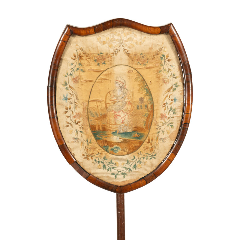 A Regency Needlework Upholstered Shield-Form Fire Screen