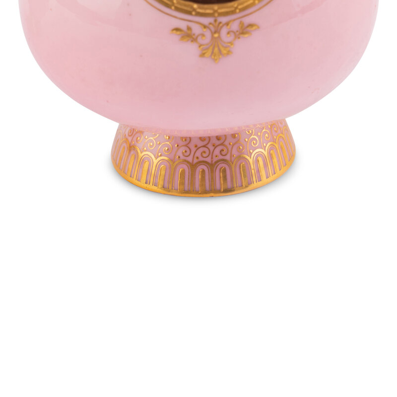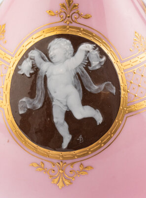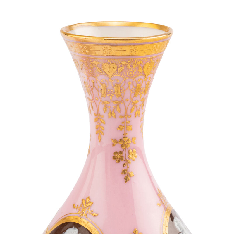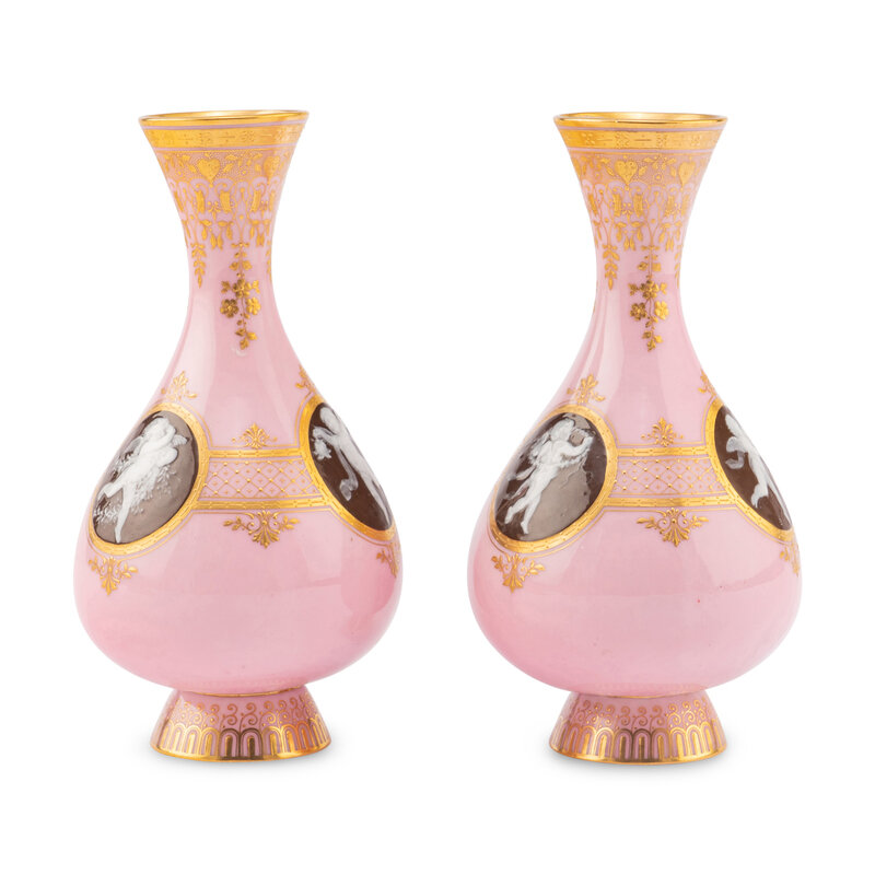 A Pair of Minton Pâte-sur-Pâte Pink Ground Bottle Vases