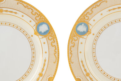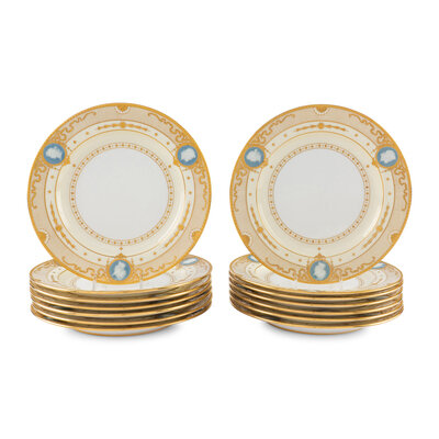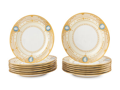 A Set of Fourteen Minton Pâte-sur-Pâte Porcelain Plates