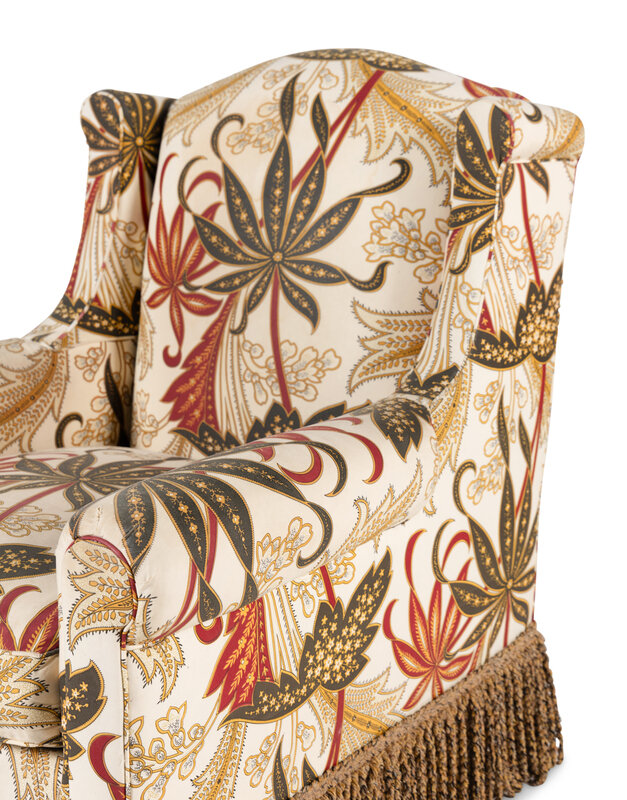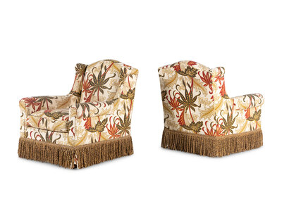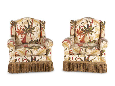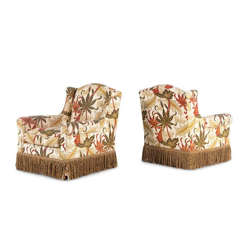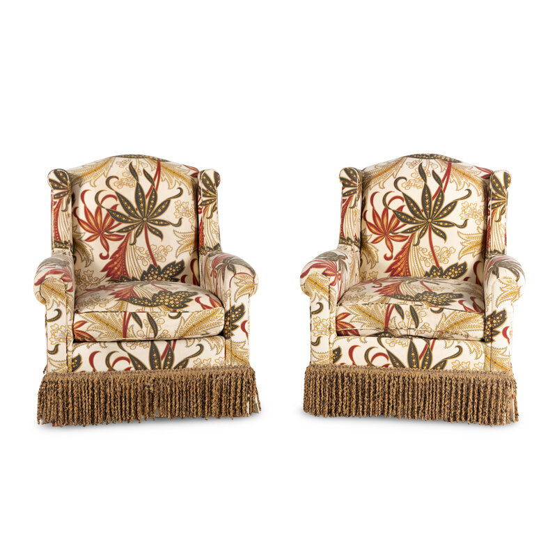 A Pair of Printed Cotton Upholstered Lounge Chairs