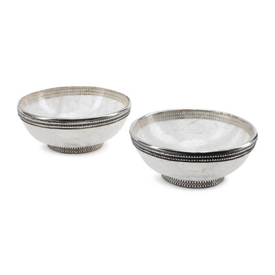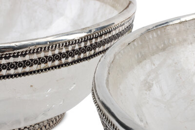 A Pair of Silver-Plate Mounted Rock Crystal Bowls