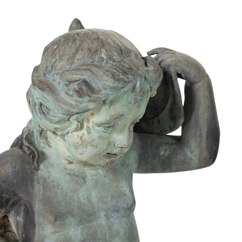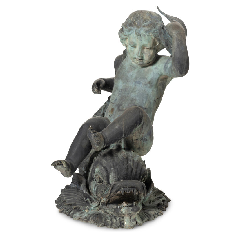 A Patinated Bronze Fountain Figure of a Youth Atop a Dolphin