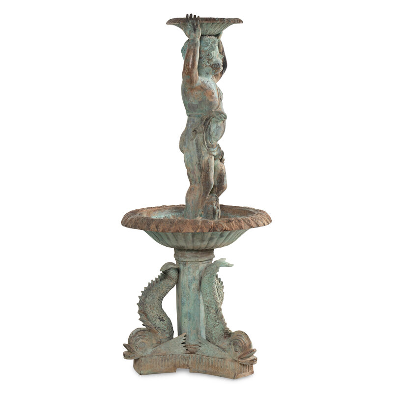A Patinated Bronze Figural Fountain