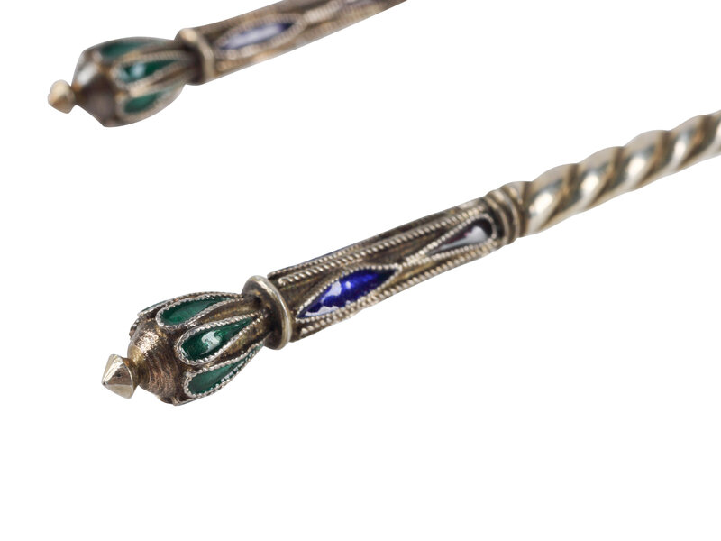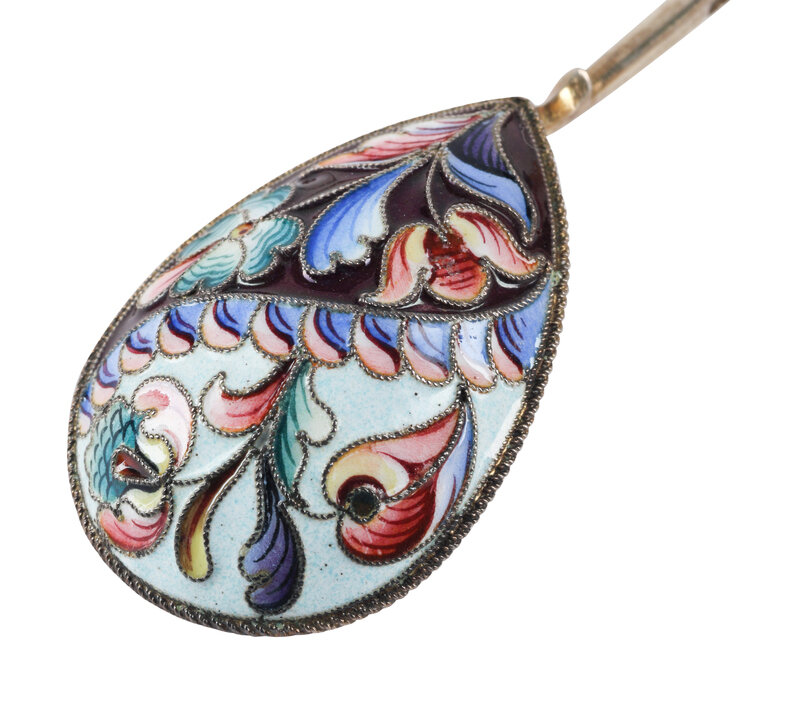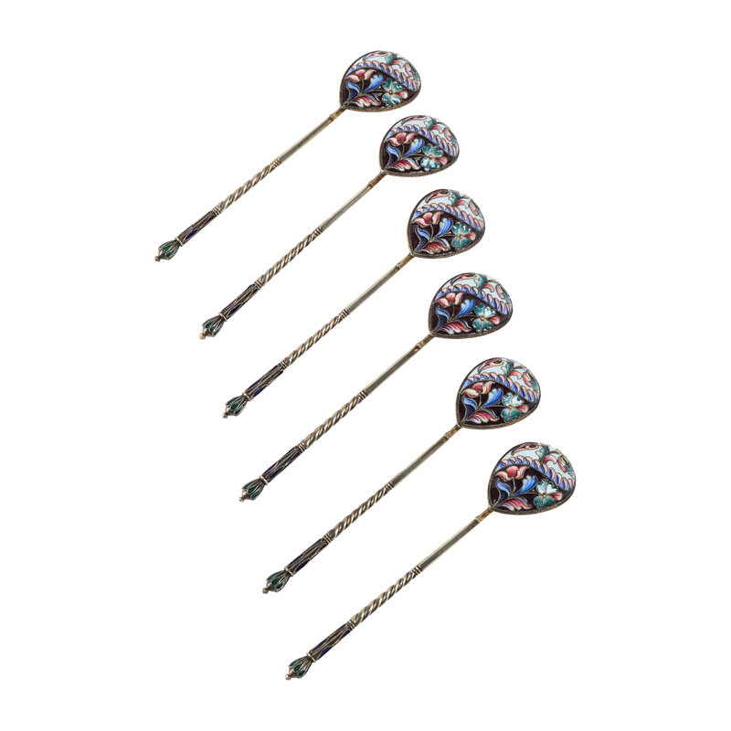 A Set of Six Russian Enameled Teaspoons