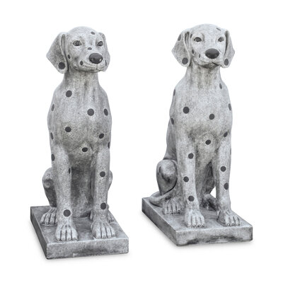 A Pair of Continental Marble-Inlaid Granite Seated Dogs