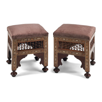 A Pair of Moorish Style Marquetry Stools