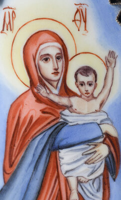 A Russian Silver and Enamel Figure of the Madonna and Child