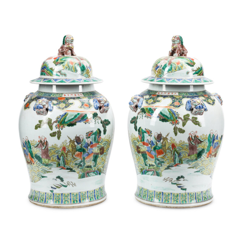 A Pair of Famille Verte Porcelain Jars
