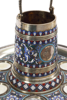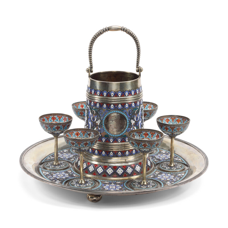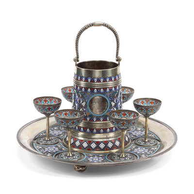 A Russian Silver, Enamel and Plique-à-Jour Enamel Punch Service