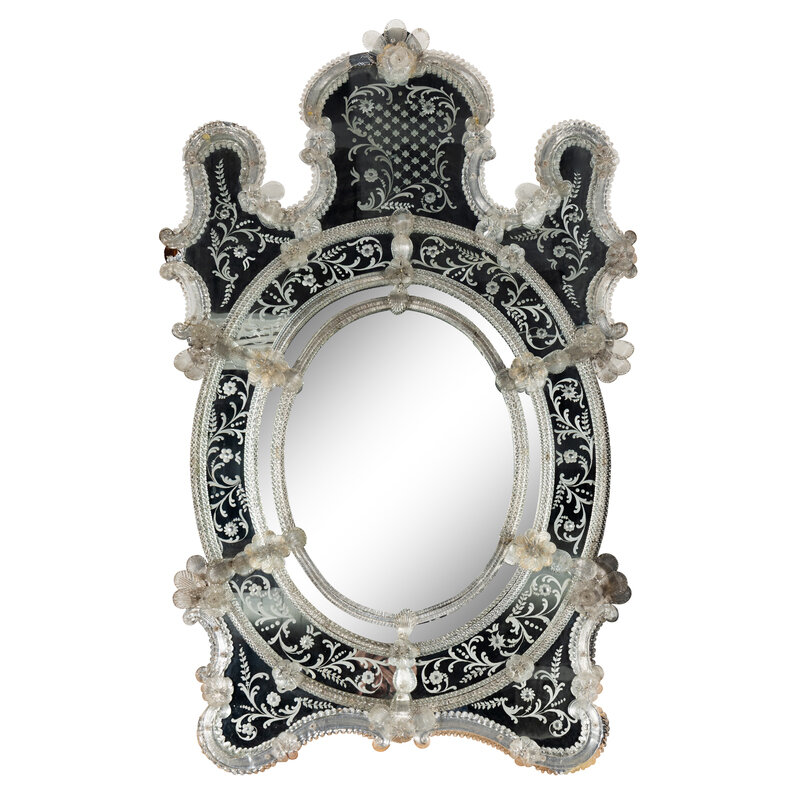 DAMAGED - A Venetian Etched Glass Mirror