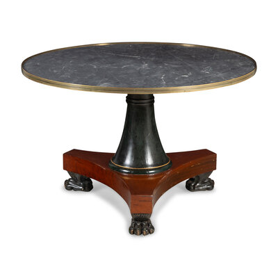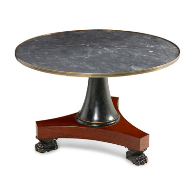 A Russian or Baltic Neoclassical Part-Ebonized Mahogany Marble-Top Center Table
