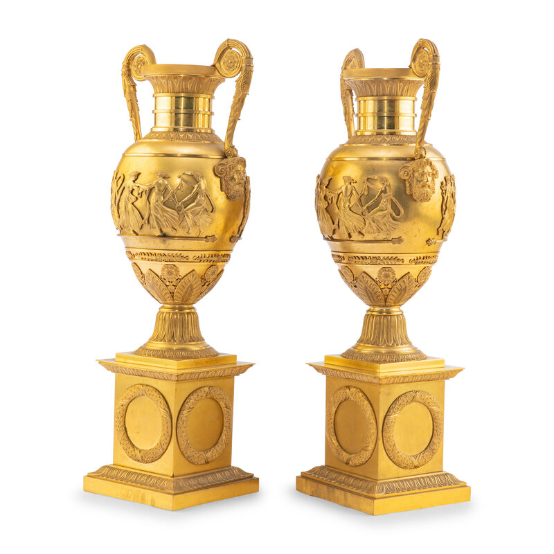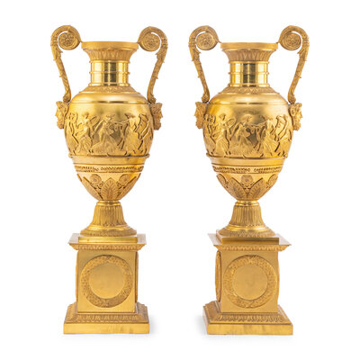 A Pair of French Gilt Bronze Urns