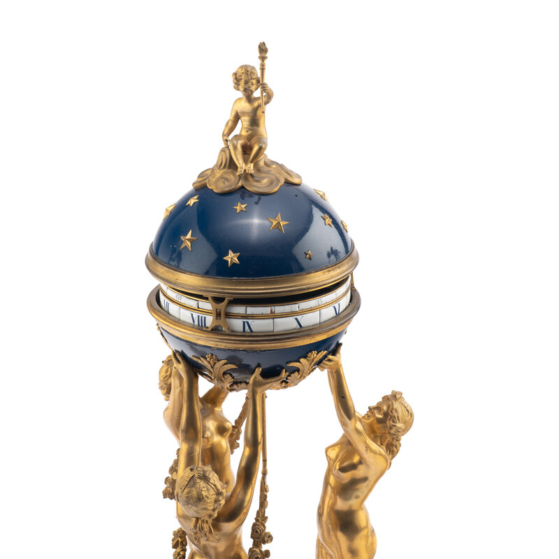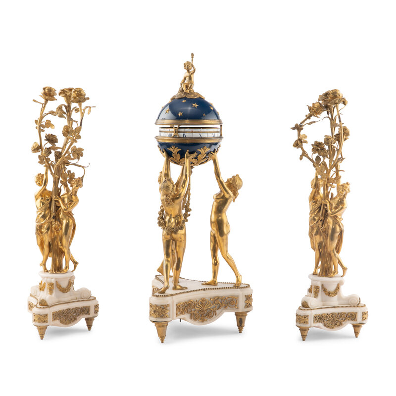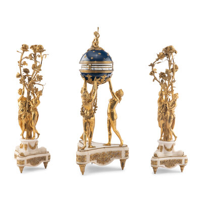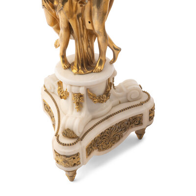 A Louis XVI Style Gilt-Bronze and White Marble Annular Clock Garniture