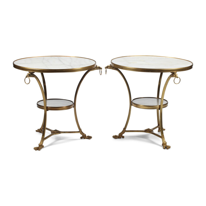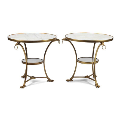 A Pair of French Neoclassical Style Gilt Bronze and Marble Guéridons