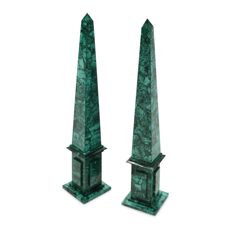 A Pair of Large Malachite Obelisks