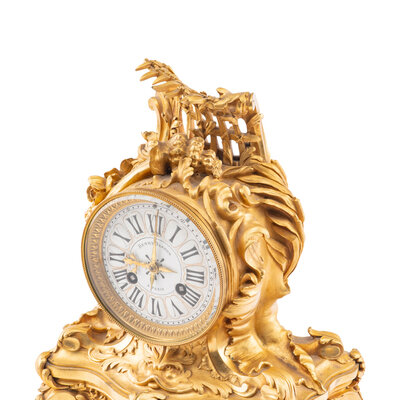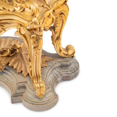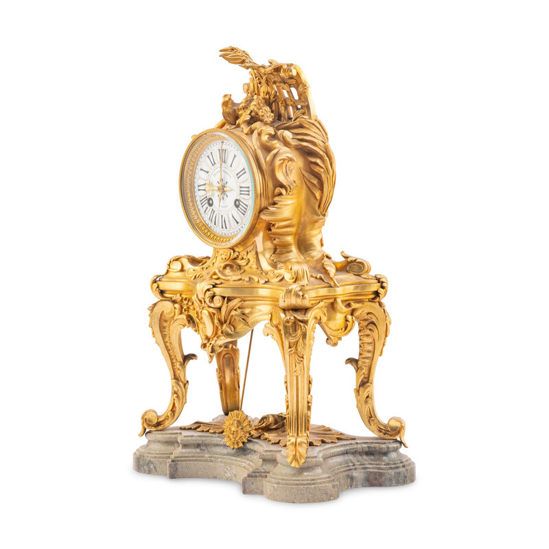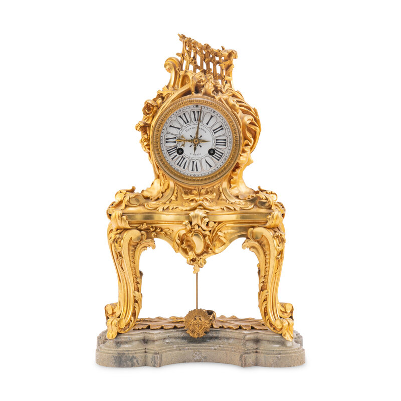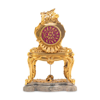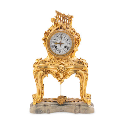 A Louis XV Style Gilt Bronze and Marble Table-Form Mantel Clock