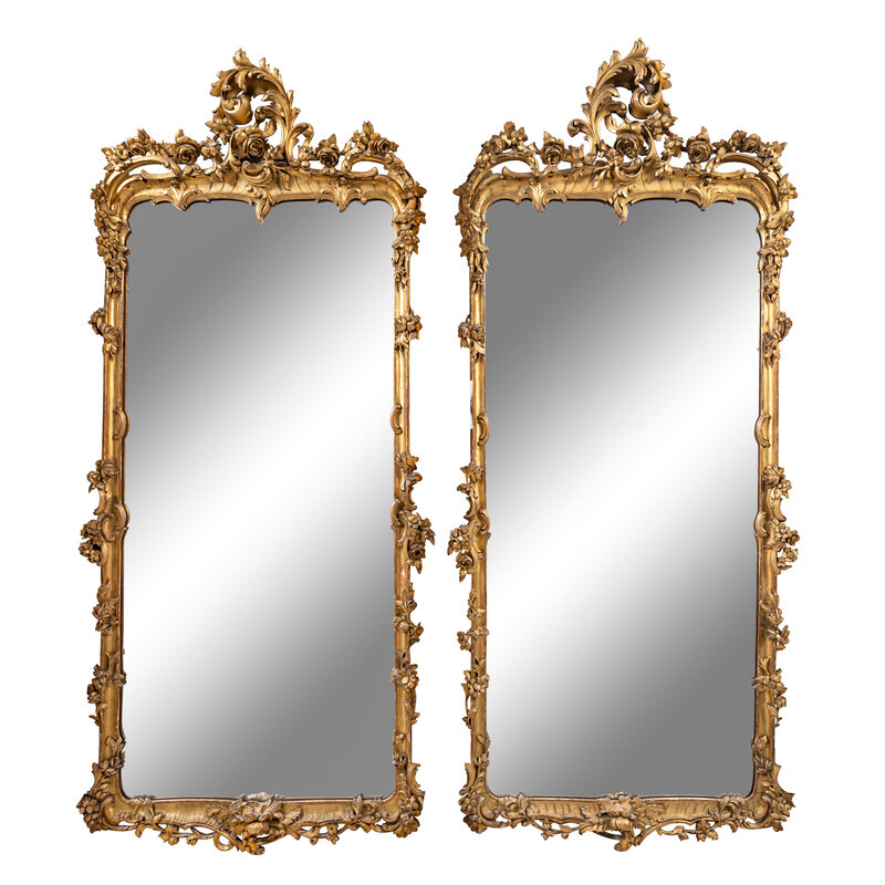 A Pair of Louis XV Style Giltwood Pier Mirrors