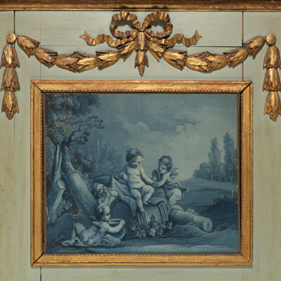 A French Painted and Parcel-Gilt Trumeau Mirror