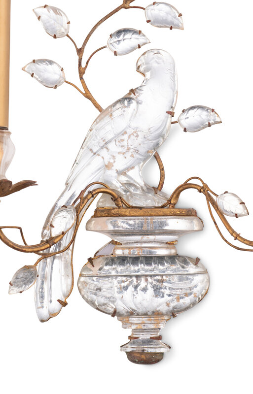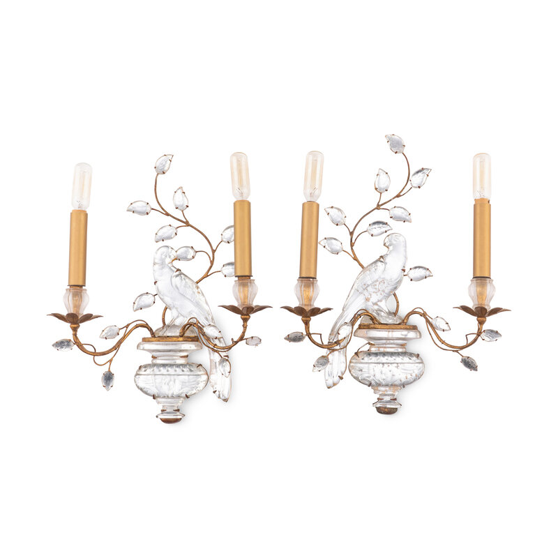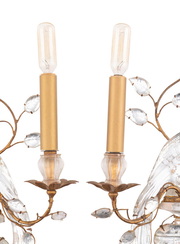 A Pair of Gilt Metal and Rock Crystal Two-Light Sconces