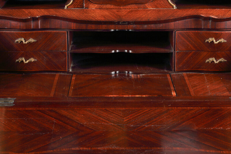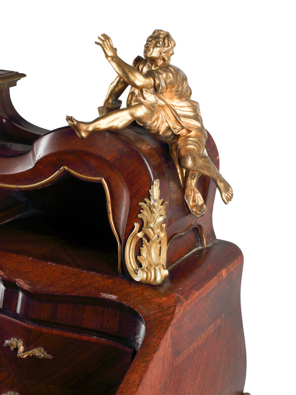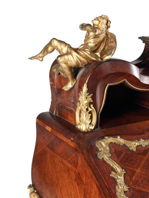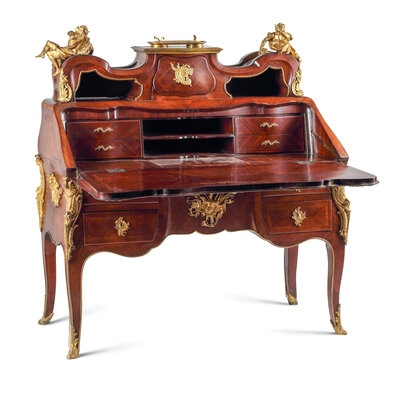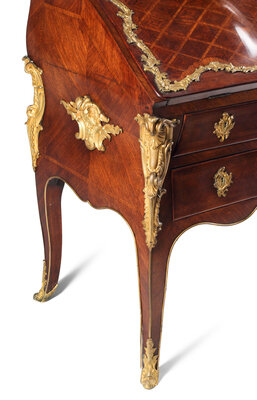 A Louis XV Style Parquetry and Gilt Bronze Mounted Slant-Front Bureau