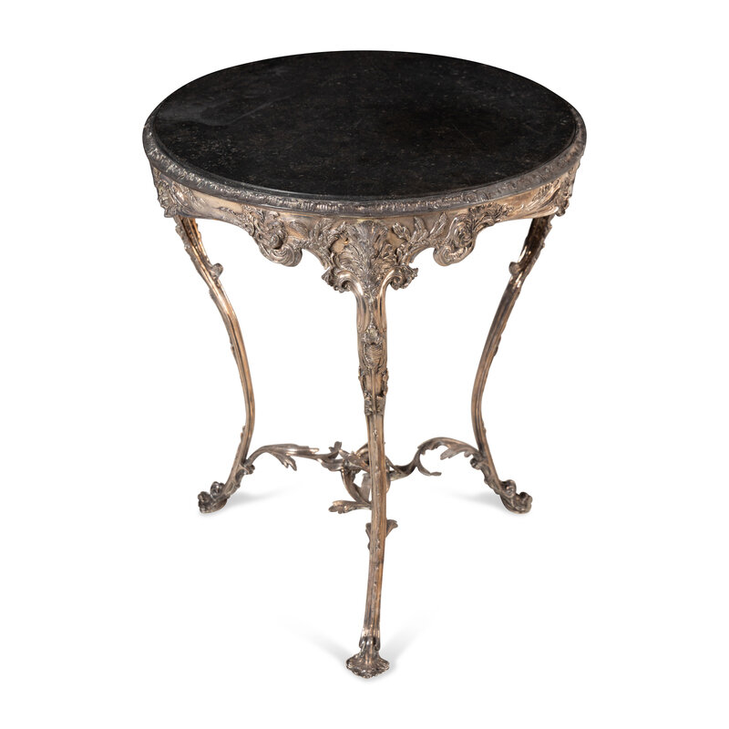 A Louis XV Style Silvered Bronze and Marble-Top Side Table