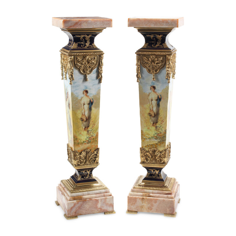 A Pair of Louis XVI Style Quartz-Top Pedestals