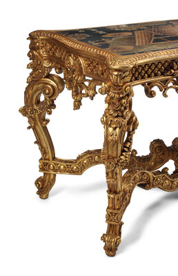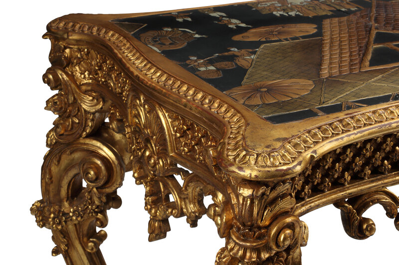 A Louis XV Style Giltwood and Chinese Lacquer Table