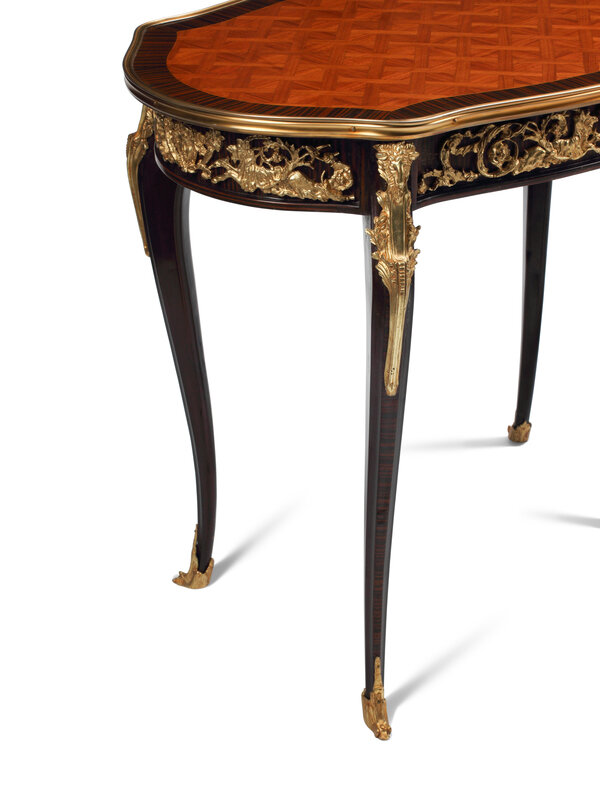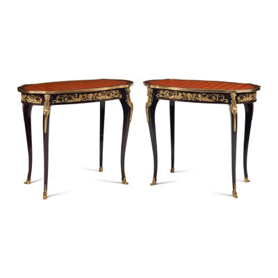 A Pair of Louis XV Style Gilt Bronze Mounted Parquetry Tables