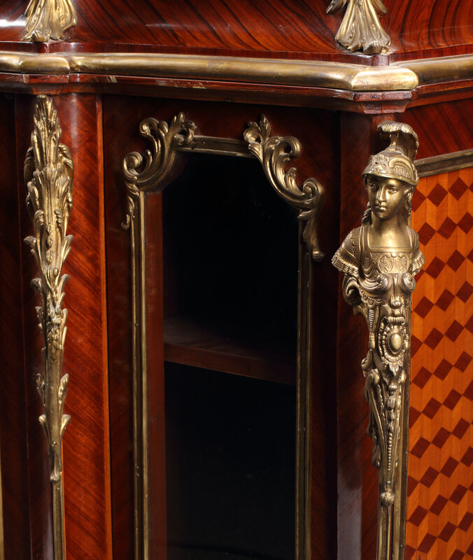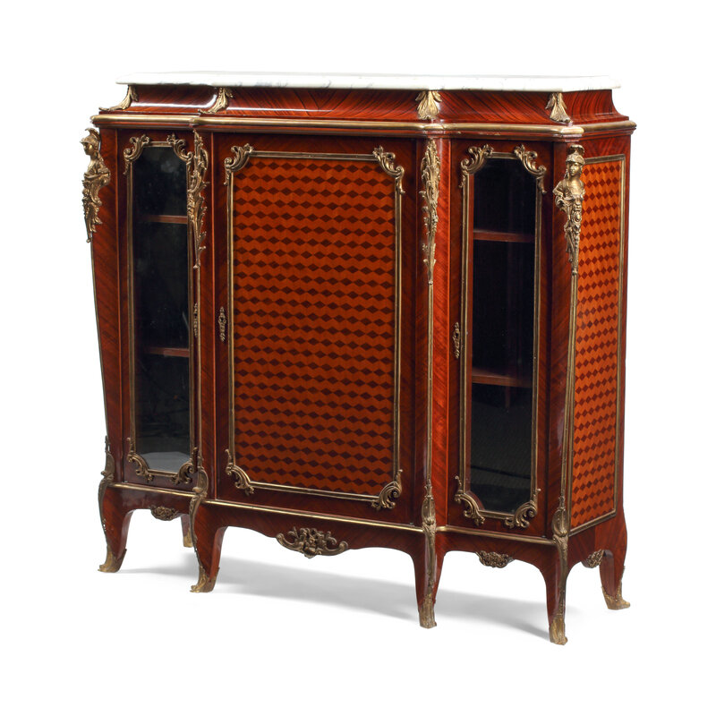 A French Gilt Bronze Mounted Marble-Top Vitrine Cabinet