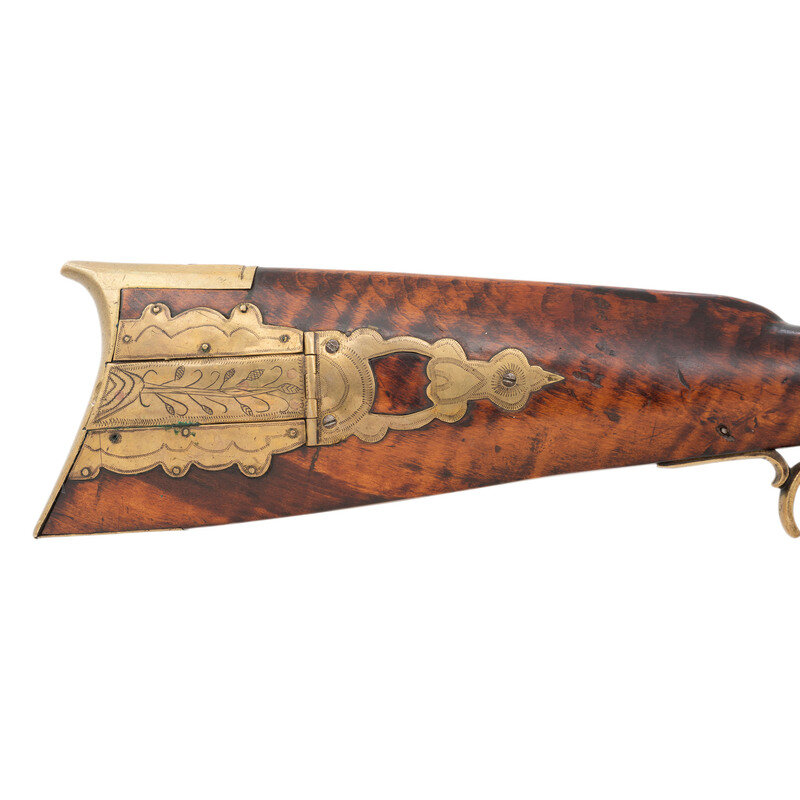 John Briggs Hixson (1822-1899) worked in Antrim, Guernsey County, Ohio during the third quarter of the 19th century, primarily producing decorated full stock percussion rifles.