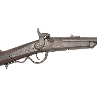 .50 caliber. 22.25" barrel. SN: 13268. Blued barrel, color casehardened receiver, iron furniture, smooth walnut stock with patchbox. Single shot percussion tilting barrel breechloading carbine with leaf rear sight, dovetailed pinched blade front sight and a saddle bar and ring opposite the lock. Lock marked in two lines at the tail GALLAGER'S PATENT/JULY 17TH, 1860 and in three lines MANUFACT'D BY/RICHARDSON & OVERMAN/PHILADA over the serial number. No cartouches are present in the wood. A spare percussion cone is present in the patchbox. Nearly 18,000 Gallager Carbines were produced during the American Civil War, many seeing US military service, with volunteer cavalry regiments that included the 2nd, 3rd, 4th & 6th Ohio and the 13th Tennessee. The closest serial number to this gun in the Springfield Research Service serial number books is #13088 which was issued to Company A of the 4th TN Mounted Infantry. {ANTIQUE}