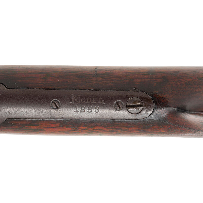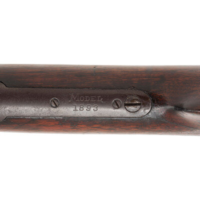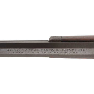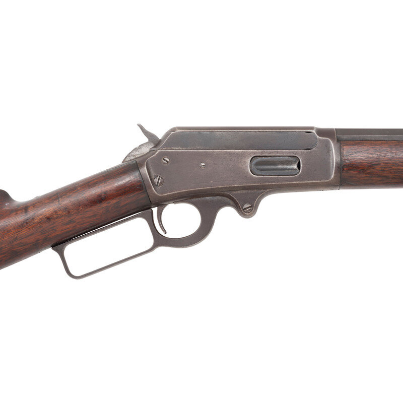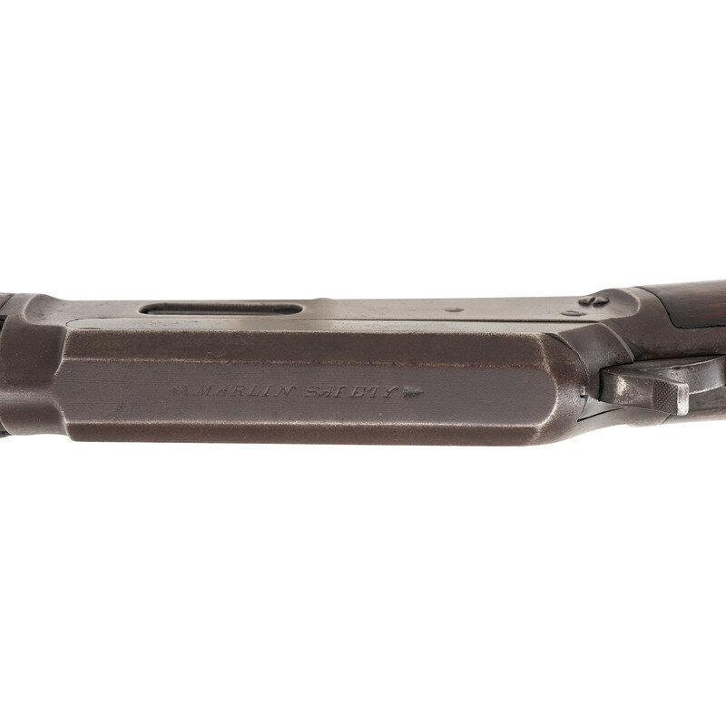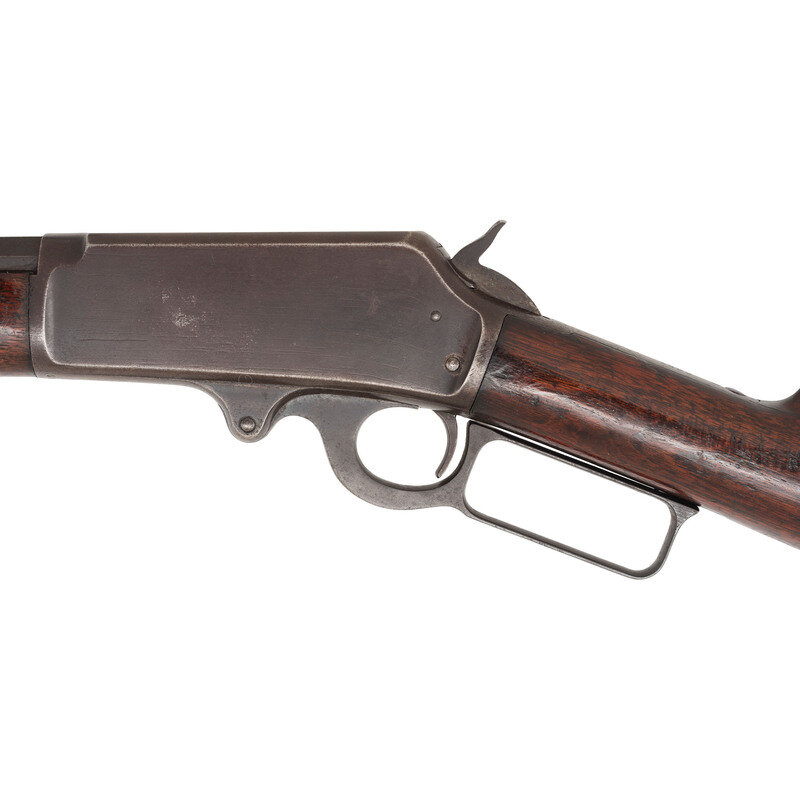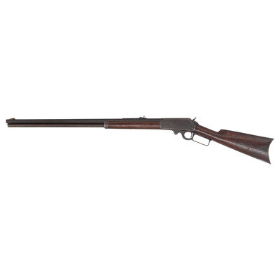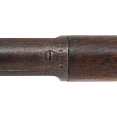 .32-20. 26" octagonal barrel. SN: 143083. Blued finish, smooth walnut straight gripped walnut stock with crescent butt and smooth forend. Lever action tubular magazine fed repeating rifle with semi-buckhorn elevation adjustable rear sight, and dovetailed German silver Rocky mountain blade front sight. Standard markings. {ANTIQUE}