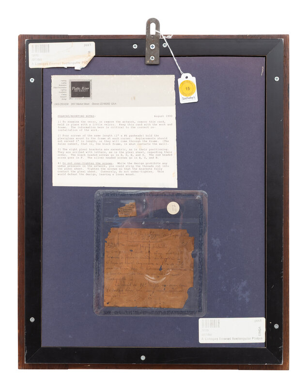 In later ebonized wood and gilt copper mounted frame.