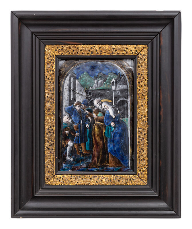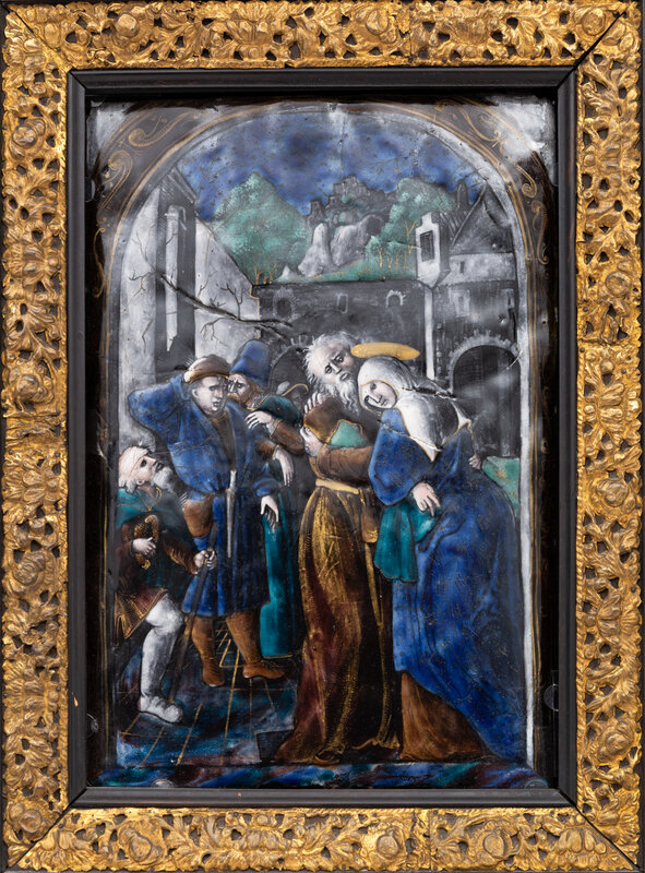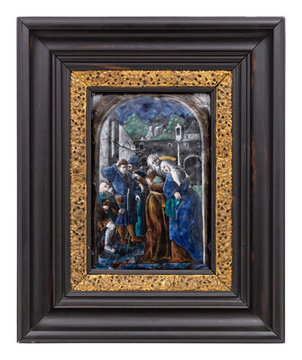 A Limoges Enamel Plaque Depicting Joachim and Anna at the Golden Gate