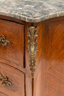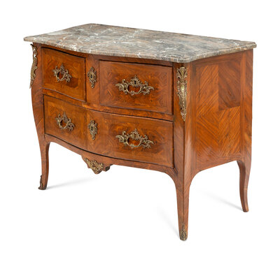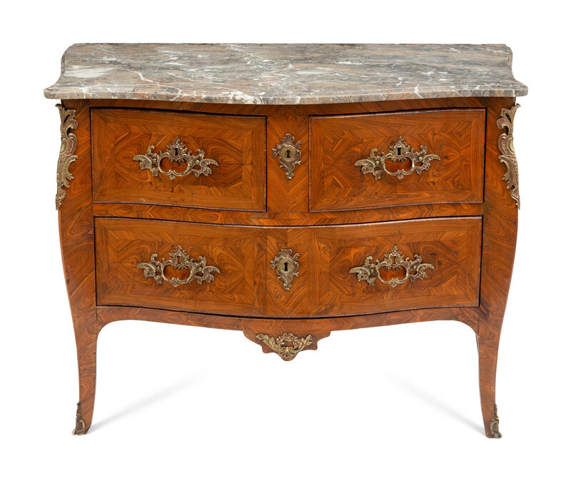 A Louis XV Gilt Bronze Mounted Tulipwood and Marble-Top Commode